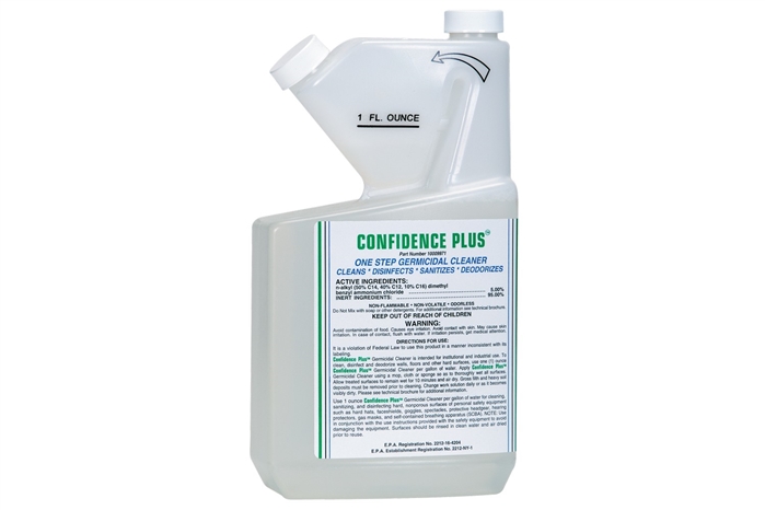 La solution Confidence Plus® 2 est un détergent germicide multipurpose à action unique, enregistré par l’EPA, à base de composés d’ammonium quaternaires, ce qui lui confère une efficacité étendue contre plusieurs agents microbiens. Elle est adaptée pour le nettoyage, la désinfection et la désodorisation des surfaces dures des EPI.