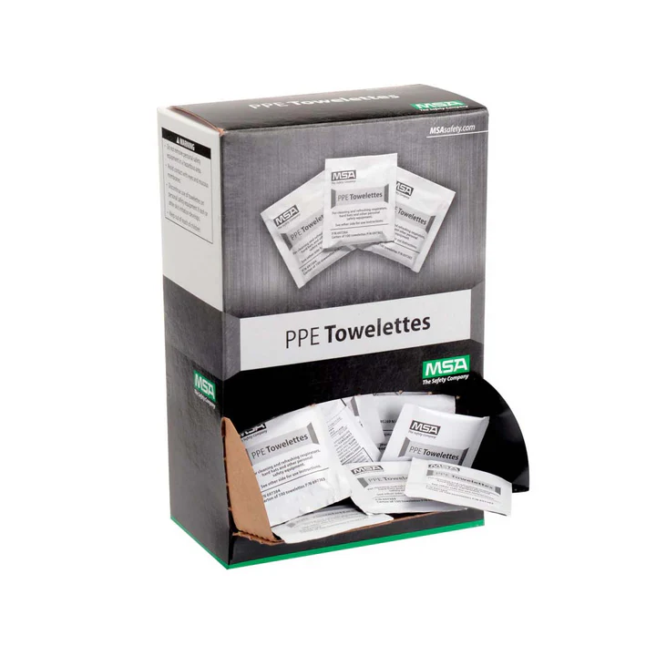 Prolongez la vie de vos EPI et maintenez les normes d’hygiène entre les nettoyages complets grâce à une sélection de lingettes et tampons nettoyants pour respirateurs, masques, visières, casques et autres équipements. Nos produits incluent des tampons MSA spécifiques pour masques, des solutions germicides Confidence Plus™ ainsi que des lingettes désinfectantes polyvalentes adaptées aux environnements de caserne. Ils sont conçus pour être sûrs sur les matériaux sensibles, efficaces contre contaminants courants et pratiques pour un entretien quotidien.